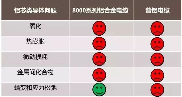 GB/T19292.2-2003標(biāo)準(zhǔn)表1注4中說明:鋁合金耐腐蝕性差于普鋁更差于銅,這是因為鋁合金電纜加入了鎂、銅、鋅、鐵元素,因此易于發(fā)生局部腐蝕如應(yīng)力腐蝕斷裂、層蝕、晶間腐蝕,而且8000系列鋁合金屬于易腐蝕配方,鋁合金電纜增加了熱處理工序,易造成物理狀態(tài)不均勻,比鋁電纜更容易被腐蝕。目前在我國應(yīng)用的鋁合金基本都是8000鋁合金系列。