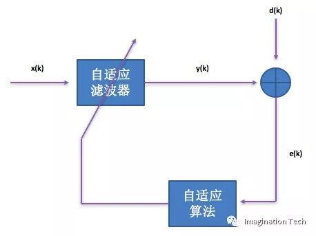 上圖中,x(k)為輸入信號(hào),y(k)為輸出信號(hào),d(k)為期望信號(hào),e(k)是d(k)和y(k)的誤差信號(hào)。自適應(yīng)濾波器的濾波器系數(shù)受誤差信號(hào)e(k)控制,根據(jù)e(k)的值和自適應(yīng)算法自動(dòng)調(diào)整。
