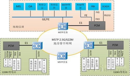 傳統(tǒng)的電力通信網采用MSTP/SDH設備+PCM設備組網如圖 1所示: