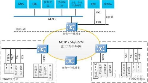 采用光電一體化設備應用于電力通信網接入層組網示意圖如圖 2: