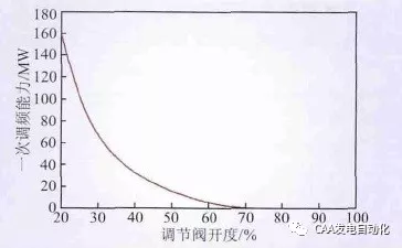 圖1 額定參數(shù)下汽輪機調(diào)門開度與一次調(diào)頻能力的關(guān)系