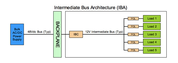 21世紀(jì)初,隨著數(shù)字和模擬芯片趨向于更低的電壓來更進(jìn)一步地減小功耗以及低成本POL的驅(qū)使,市場(chǎng)逐漸開始采用IBA架構(gòu)。基于IBA架構(gòu)的電源系統(tǒng)前端采用AC/DC來獲得較低的直流電壓,典型的有48V/24V/12V等;接著通過隔離的DC/DC電源轉(zhuǎn)成更低的中間總線電壓,典型的有5-12V,最后通過POL轉(zhuǎn)成高質(zhì)量的低電壓供給各種數(shù)字和模擬電子功能模塊。