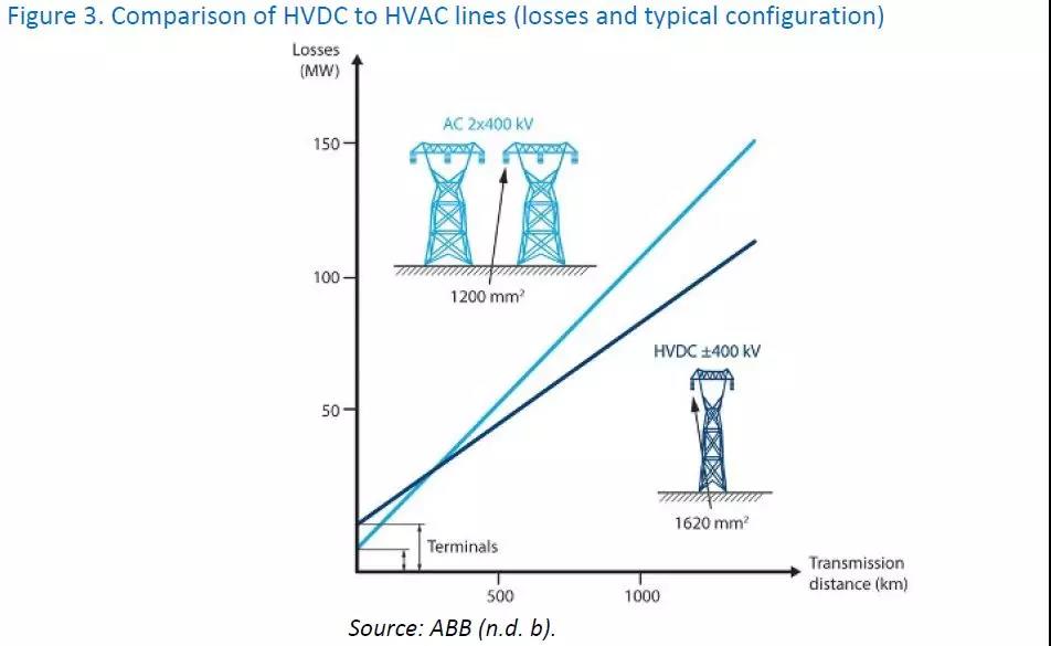 圖3. HVDC與HVAC線路的比較(損耗和典型配置)資料來(lái)源:ABB(n.d. b)