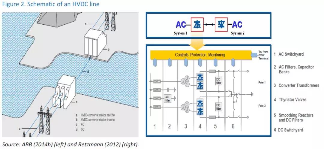 圖2. HVDC線的示意圖。資料來(lái)源:ABB(2014b)(左)和Retzmann(2012)(右)。