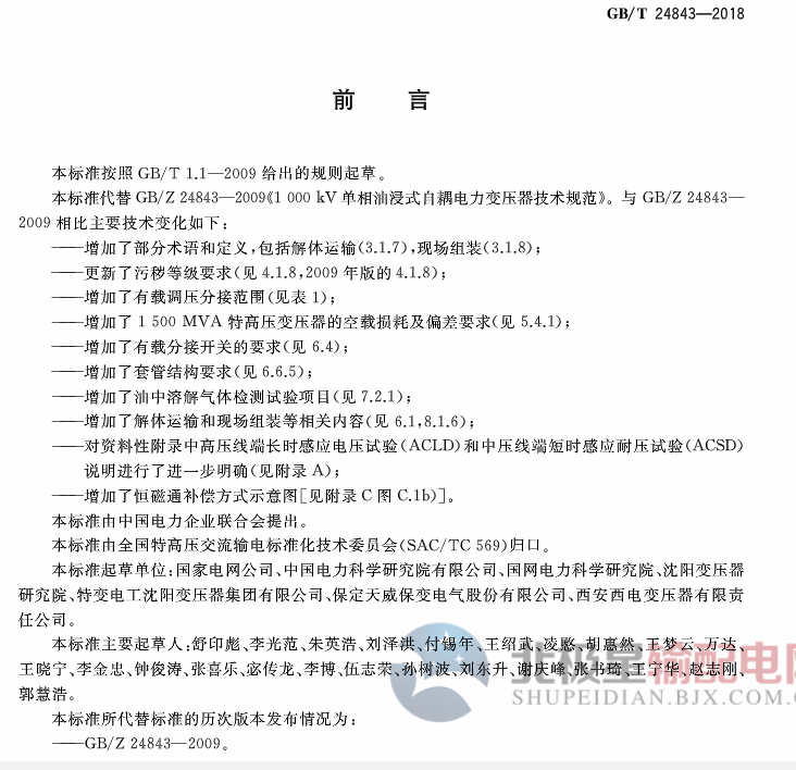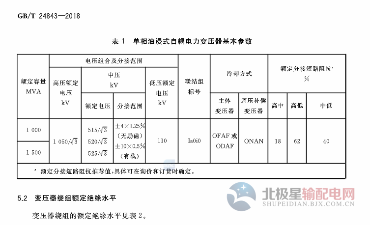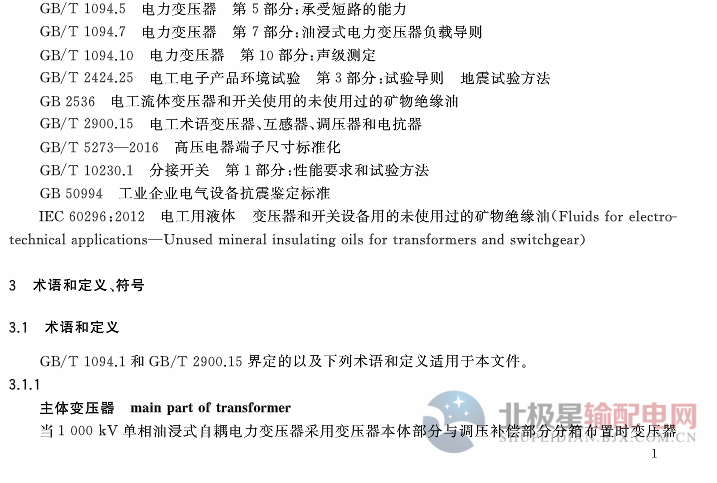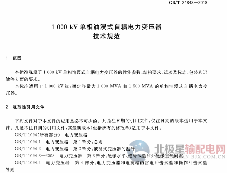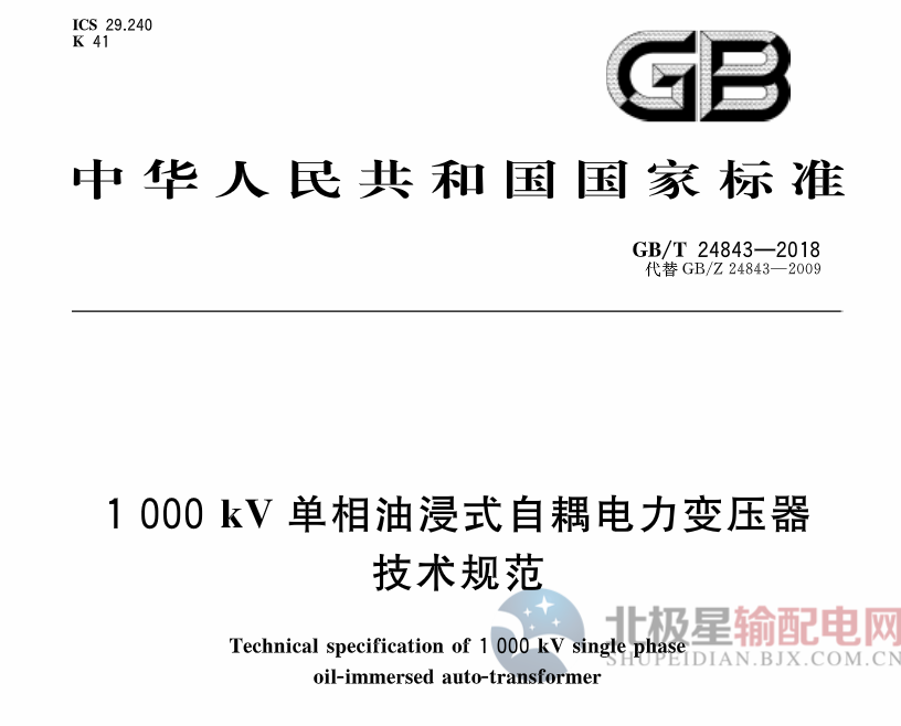 國(guó)家標(biāo)準(zhǔn)《1000kv單相油浸式自耦電力變壓器技術(shù)規(guī)范》2019年2月起實(shí)施
