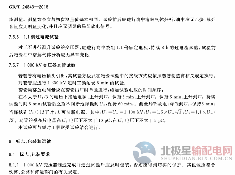 《1000kv單相油浸式自耦電力變壓器技術(shù)規(guī)范》標(biāo)準(zhǔn)于2018年7月13日發(fā)布,2019年2月1日實(shí)施。