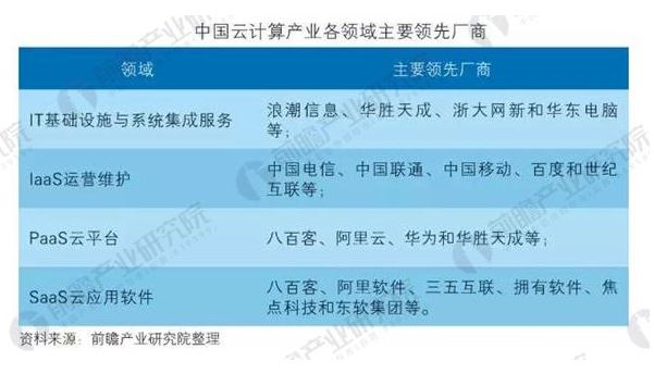 目前,中國云計算產(chǎn)業(yè)各領(lǐng)域主要領(lǐng)先廠商主要如下: