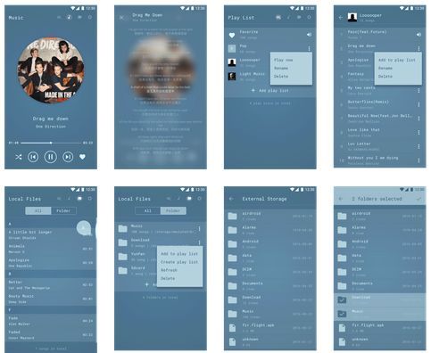采用了RxJava開發(fā)的本地音樂播放器,UI 圖標(biāo)都是 https://material.io上找的,最終作品顏值如下: