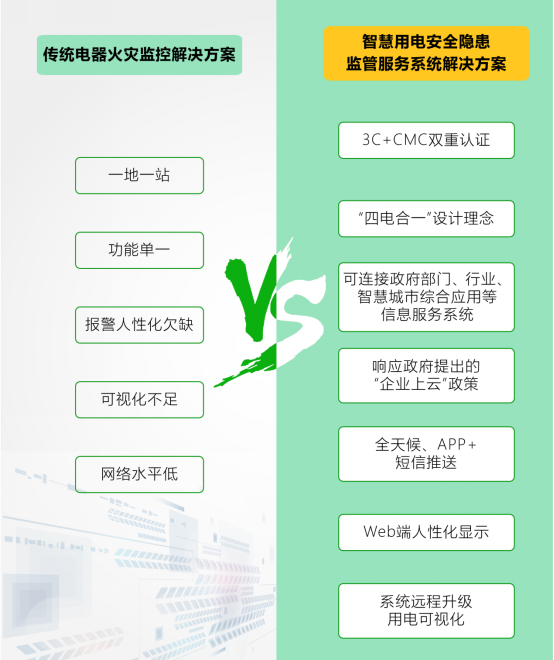 采用智慧用電安全隱患監(jiān)管云平臺來實現(xiàn)智慧城市用電解決方案,相比于傳統(tǒng)電氣火災(zāi)解決方案,創(chuàng)新性如下: