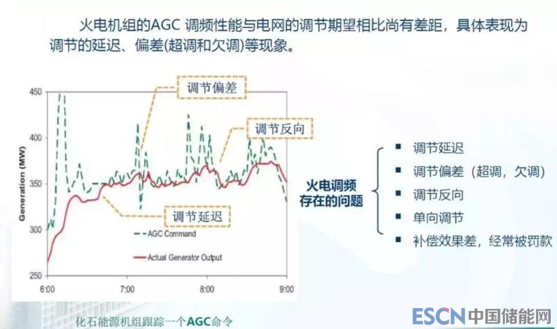 目前,國內(nèi)火電機(jī)組的AGC調(diào)頻性能與電網(wǎng)的調(diào)節(jié)期望相比尚有差距,表現(xiàn)為調(diào)節(jié)延遲、偏差(超調(diào)和欠調(diào))等現(xiàn)象。下圖為火電調(diào)頻現(xiàn)狀: