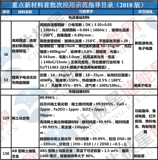 工信部發(fā)布2018年重點(diǎn)新材料首批次應(yīng)用示范指導(dǎo)目錄 含多個(gè)鋰離子電池材料項(xiàng)目