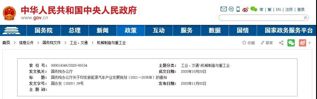 國務(wù)院辦公廳關(guān)于印發(fā)新能源汽車產(chǎn)業(yè)發(fā)展規(guī)劃(2021—2035年)的通知