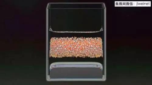 液態(tài)金屬電池由三層液態(tài)物質(zhì)從下而上組成:底層是液態(tài)銻,上層是液態(tài)鎂,中間由熔鹽電解液分割。