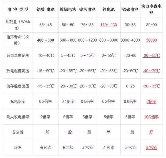 由上表可以看出動力電容電池在多種性能上是優(yōu)于如今的主流電池的。