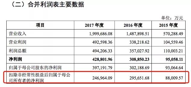 寧德時(shí)代的招股書顯示,2015年、2016年、2017年其歸屬母公司股東凈利潤(rùn)分別為9.31億、30.22億、39.72億,2016年和2017年同比上一年的增長(zhǎng)分別為224.60%和31.44%,保持了較高速的增長(zhǎng)。