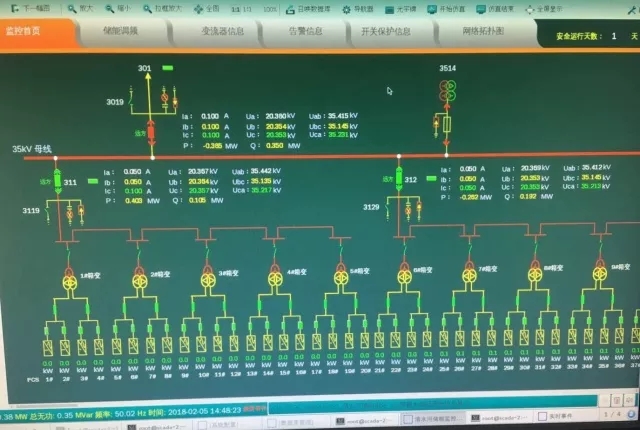 整個(gè)儲(chǔ)能系統(tǒng)由35840個(gè)92Ah磷酸鐵鋰電池串并聯(lián)組成,功率轉(zhuǎn)換系統(tǒng)由40臺(tái)500kW功率轉(zhuǎn)換系統(tǒng)組成。