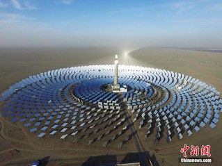 冬日航拍鏡頭下的亞洲首座全天候熔鹽塔式光熱電站。(楊艷敏/中國(guó)新聞網(wǎng))