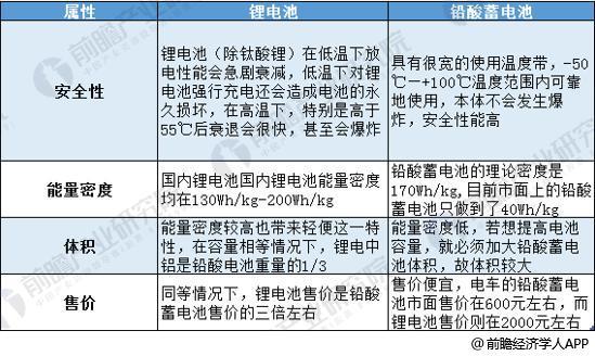 圖表1 :鋰電池和鉛酸蓄電池屬性對比