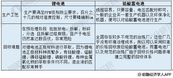 圖表4:鋰電池和鉛酸蓄電池生產(chǎn)工藝及回收對比