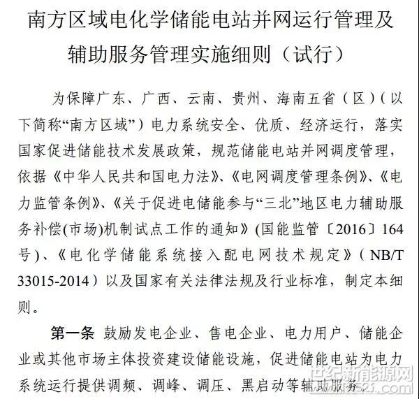 近日,南方監(jiān)管局發(fā)布《南方區(qū)域電化學儲能電站并網(wǎng)運行管理及輔助服務管理實施細則(試行)》,本細則適用于南方區(qū)域地市級及以上電力調(diào)度機