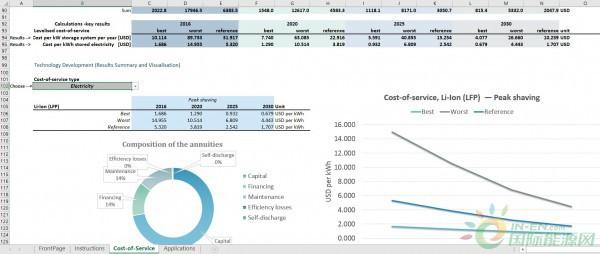 為了解決這個問題,IRENA(國際能源署)在對電力存儲技術(shù)及其成本和性能分析的基礎(chǔ)上推出了一種新的電力存儲工具,使用戶能夠?qū)?2種固定存儲應(yīng)用中的13種不同電力存儲技術(shù)的相對經(jīng)濟(jì)適用性進(jìn)行快速而穩(wěn)健的分析。通過修改各種參數(shù),用戶可以了解不同項(xiàng)目和地點(diǎn)的特定變量。