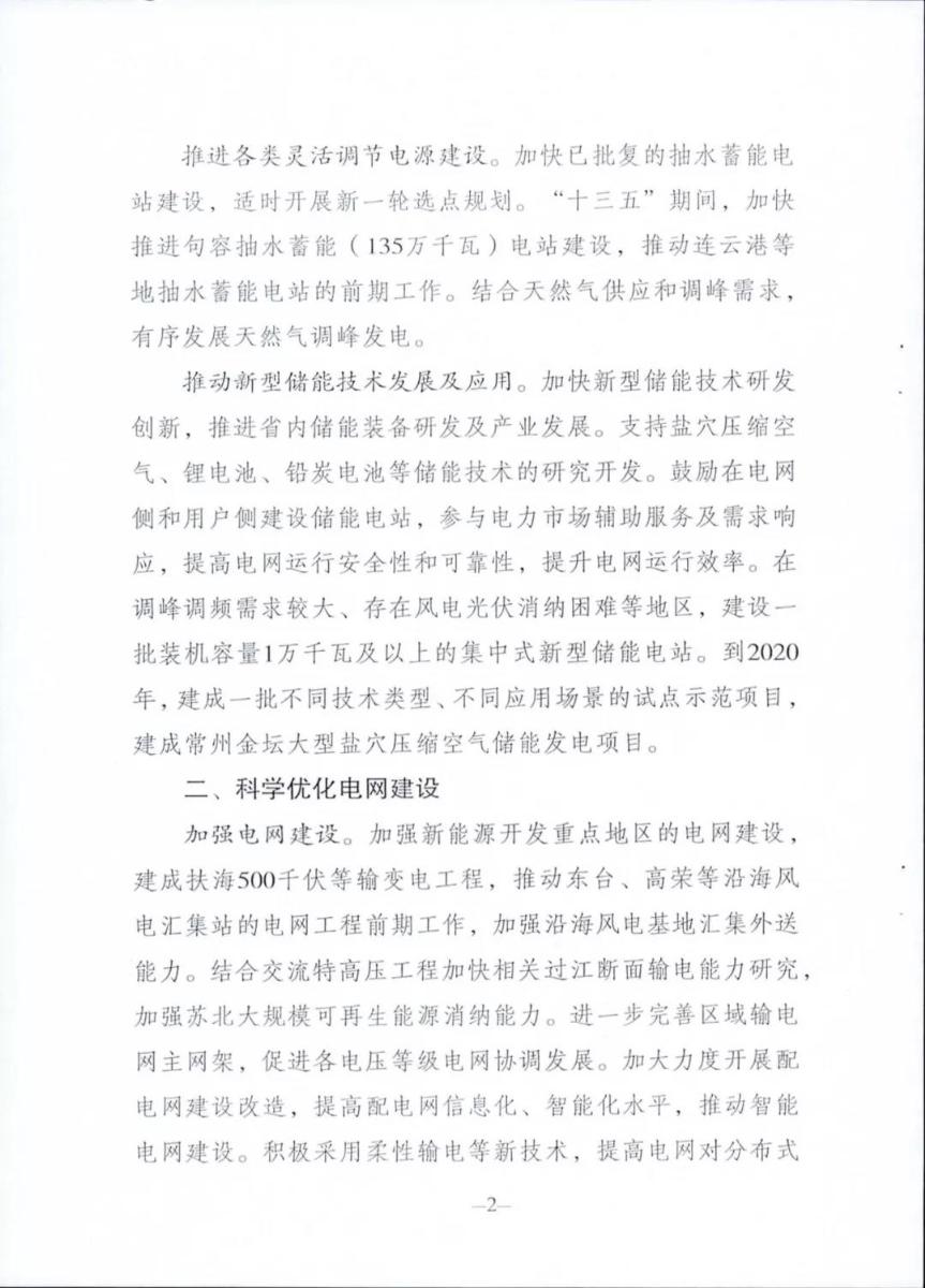 其中電源側(cè)除了加快推進(jìn)句容抽水蓄能電站建設(shè)、推動(dòng)連云港等地抽水蓄能前期工作,還將推動(dòng)新型儲(chǔ)能技術(shù)發(fā)展及應(yīng)用,鼓勵(lì)在電網(wǎng)側(cè)和用戶側(cè)建設(shè)儲(chǔ)能電站,在調(diào)峰調(diào)頻需求較大、存在風(fēng)電光伏消納困難等地區(qū),將建設(shè)一批裝機(jī)容量1萬(wàn)千瓦及以上的集中式新型儲(chǔ)能電站,到2020年建成一批不同技術(shù)類型、不同應(yīng)用場(chǎng)景的試點(diǎn)示范項(xiàng)目,建成常州金壇大型鹽穴壓縮空氣儲(chǔ)能發(fā)電項(xiàng)目。