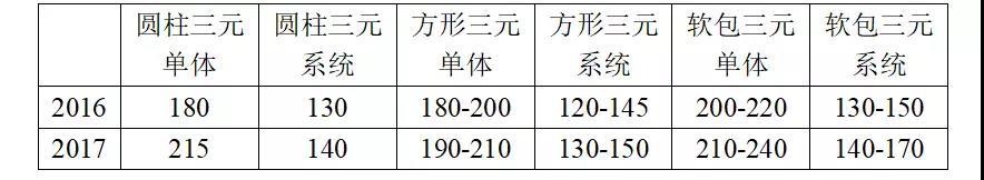 經(jīng)過(guò)一段時(shí)間的發(fā)展,磷酸鐵鋰和三元鋰電池的技術(shù)水平得到明顯提升。在成本方面,磷酸鐵鋰電池組價(jià)格從2017年年初的1.8-1.9元/Wh下降到年底的1.45-1.55元/Wh。三元?jiǎng)恿﹄姵匕鼉r(jià)格從年初的1.7-1.8元/Wh下降到年底的1.4-1.5元/Wh。