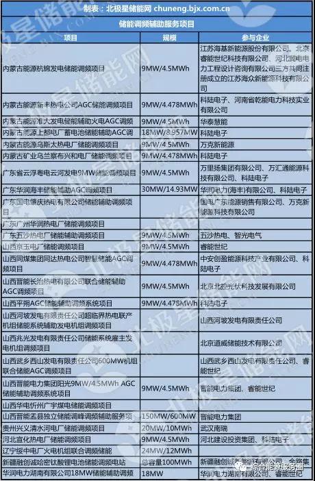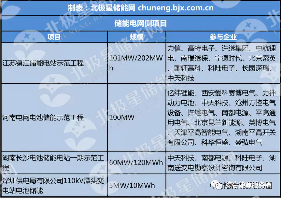 目前國內(nèi)主要投運的儲能項目規(guī)模及參與企業(yè)整理如下,為大家提供參考。