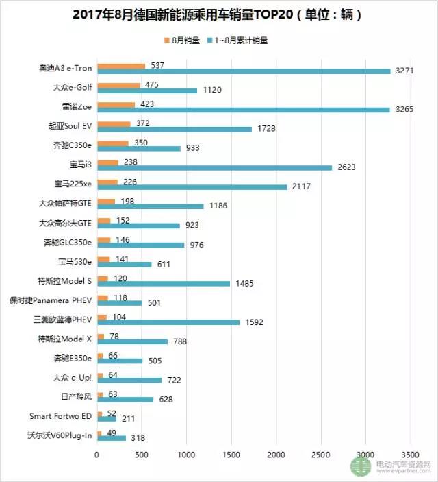 從8月月度銷(xiāo)量排名來(lái)看,8月銷(xiāo)量為537臺(tái)的奧迪A3 e-Tron奪得月度銷(xiāo)量冠軍;大眾e-Golf排在了第二位,8月銷(xiāo)售了475臺(tái);雷諾Zoe銷(xiāo)售了423臺(tái),排在第三位。
