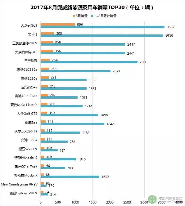 2017年8月,挪威新能源乘用車(chē)銷(xiāo)售了五千余臺(tái), 1-8月新能源乘用車(chē)?yán)塾?jì)銷(xiāo)量3.6萬(wàn)臺(tái)。從挪威汽車(chē)市場(chǎng)來(lái)看,新能源乘用車(chē)已經(jīng)占據(jù)了高達(dá)35%的市場(chǎng)份額。