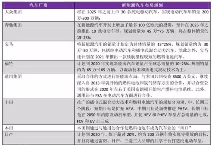 2017年初,各國主要汽車生產(chǎn)廠商陸續(xù)發(fā)布了未來在新能源汽車領域的發(fā)展規(guī)劃。到2025 年,各車企在新能源汽車領域的規(guī)劃銷量合計將達到570 萬-820萬輛。