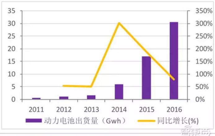 受全球新能源汽車浪潮來臨,動力電池空間巨大。根據(jù)研究機構(gòu)EVTank統(tǒng)計數(shù)據(jù)顯示,2016年中國國內(nèi)動力鋰電池企業(yè)出貨量合計達到30.5GWh,同比2015年的17.0GWh大幅度增長79.4%,2013-2016年動力電池出貨量復合增長率高達172.94%。