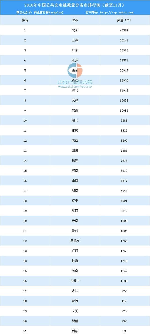 分地區(qū)來(lái)看,2018年11月公共充電基礎(chǔ)設(shè)施建設(shè)區(qū)域較為集中,北京、上海、廣東等加速發(fā)展地區(qū)建設(shè)的公共充電基礎(chǔ)設(shè)施占比達(dá)77%;示范推廣地區(qū)和積極促進(jìn)地區(qū)共占23%。截至11月,省級(jí)行政區(qū)域內(nèi)所擁有的公共類充電樁數(shù)量前十的分別為北京、上海、廣東、江蘇、山東、浙江、河北、天津、安徽、湖北。