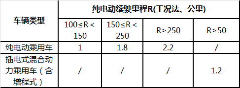 2. 純電動(dòng)乘用車(chē)動(dòng)力電池系統(tǒng)的質(zhì)量能量密度不低于90Wh/kg,對(duì)高于120Wh/kg的按1.1倍給予補(bǔ)貼。