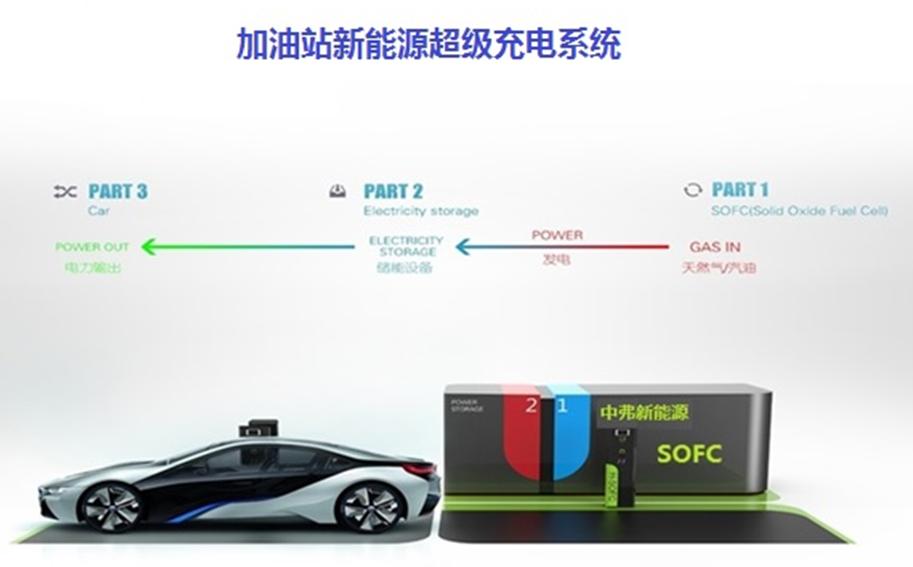 由于固體氧化物燃料電池可用于軍事,發(fā)達(dá)國家限制向我國出口。經(jīng)過多年技術(shù)研發(fā),中弗新能源的創(chuàng)始團(tuán)隊(duì)終于突破關(guān)鍵技術(shù),研制出了“新能源汽車超級(jí)充電系統(tǒng)裝置”樣機(jī)。把1升汽柴油或1標(biāo)方天然氣輸入這個(gè)裝置,可輸出5度直流電。它有多種用途,中弗新能源決定將其首先應(yīng)用于加油站、加氣站,通過安裝新能源汽車超級(jí)充電系統(tǒng)裝置,讓加油站網(wǎng)點(diǎn)具有為新能源汽車充電的功能。
