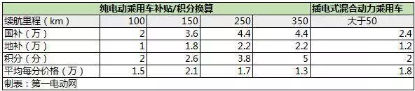 根據2017年的新能源汽車補貼辦法以及新能源乘用車不同車型積分計算辦法,在不考慮倍率因素的情況下,筆者進行以下粗略估算。根據下表可以看出,如果積分完全覆蓋國補和地補,那么每分的價值在1.3萬-2.1萬之間。即使僅覆蓋國補,則也有0.88~1.38萬元的價值。