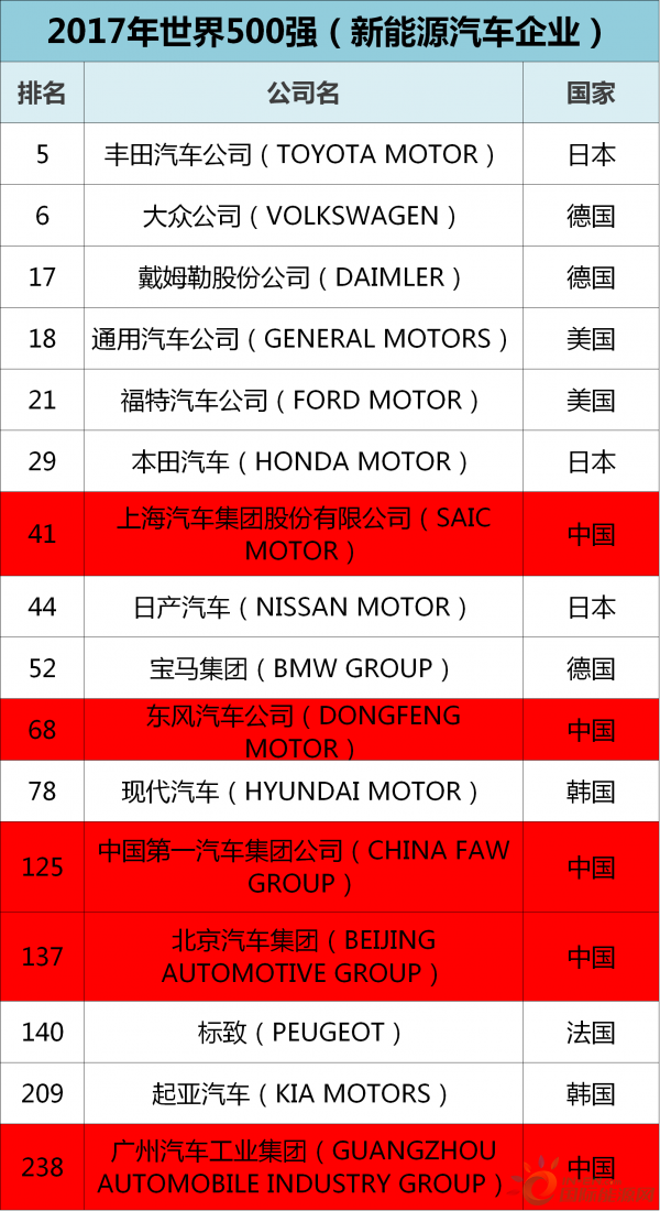 前不久,財富中文網(wǎng)發(fā)布了世界和中國500強企業(yè)排行榜,在世界500強中,新能源車企占到16家,其中有5家為中國車企,分別是:上海汽車集團股份有限公司、東風(fēng)汽車公司、中國第一汽車集團公司、北京汽車集團和廣州汽