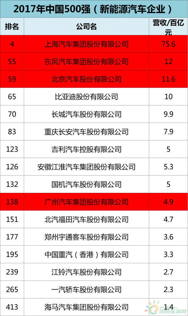 前不久,財富中文網(wǎng)發(fā)布了世界和中國500強企業(yè)排行榜,在世界500強中,新能源車企占到16家,其中有5家為中國車企,分別是:上海汽車集團股份有限公司、東風(fēng)汽車公司、中國第一汽車集團公司、北京汽車集團和廣州汽車工業(yè)集團,五家車企中,入圍的中國新能源車企中,上汽集團在世界500強中排到了41名,位居中國新能源車企榜首。