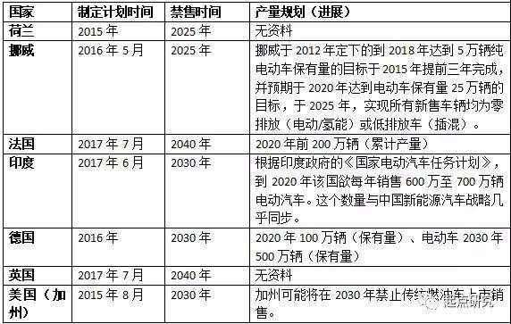 自2015年起,以荷蘭為首的一些歐洲國(guó)家就加入了“國(guó)際零排放車(chē)輛聯(lián)盟”,承諾將在2050年以前讓所售新車(chē)全部為新能源車(chē)型。隨后,挪威、法國(guó)、德國(guó)、英國(guó)等國(guó)也先后公布了禁售燃油車(chē)的計(jì)劃,禁售時(shí)間表普遍定在2025-2040年這一區(qū)間。