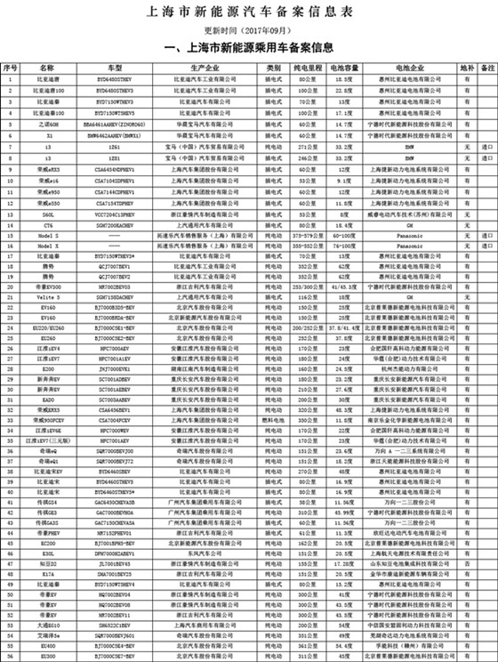 上海經(jīng)信委發(fā)布9月份新能源汽車(chē)備案目錄