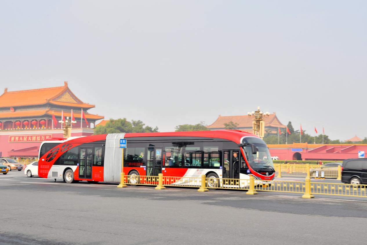 眾所周知,北京1路公交車運營線路貫穿長安街東西,全程27.1公里,途中更是經(jīng)過天安門、人民大會堂、人民英雄紀念碑等景點。因此,該線路不僅肩負著首都市民的日常出行職責(zé),更承載著旅客游覽、觀光的使命,而這就對車輛的尺寸和承載能力提出了更高的要求。