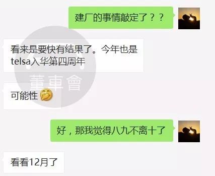 為更好地服務中國市場,特斯拉正與上海市政府探討在該地區(qū)建設工廠的可能性。正如之前所溝通,到今年年底,我們的國產化計劃將會更加清晰。特斯拉一直致力于深耕中國市場。同時,為了更好地服務全球各地市場,我們也不斷在全球范圍內評估潛在的制造工廠的選址。盡管我們預計大部分生產仍將在美國完成,但我們需要設立海外工廠以確保更多的當地消費者能負擔得起我們的產品。如后續(xù)的聊天記錄所示,特斯拉內部也應該是基本確認了這個消息,只是等待在合適的機會予以宣布,而這個時間可能在12月份。