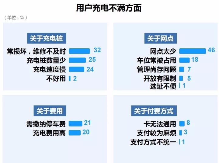 據(jù)威爾森策略研究部新能源車主充電需求研究,普遍用戶反饋新能源車充電難。就目前用戶反映的充電不滿意原因看來(lái),主要涉及充電樁運(yùn)營(yíng)以及網(wǎng)點(diǎn)布局問(wèn)題。