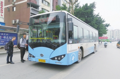 廣安市民排隊乘坐純電動公交車