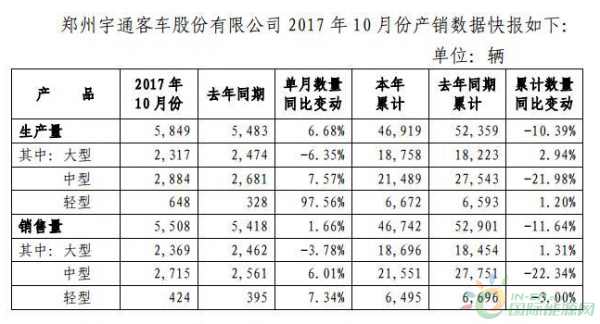 在連續(xù)兩個(gè)月銷量突破7千輛后,宇通在10月份雖然出現(xiàn)環(huán)比下降,但同比依然保持了難得的正增長(zhǎng)?! ?1月3日,鄭州宇通客車股份有限公司(以下簡(jiǎn)稱:宇通客車)發(fā)布2017年10月份產(chǎn)銷數(shù)據(jù)快報(bào)??靾?bào)顯示,10
