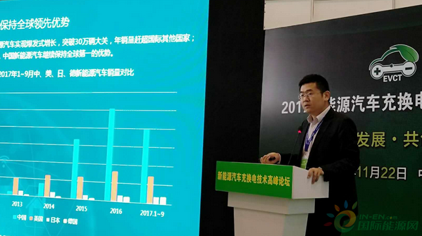 左培文 中國汽車技術(shù)研究中心情報所領(lǐng)域?qū)<摇⒖偙O(jiān) 出席會議,就新能源汽車充電樁發(fā)展狀況與商業(yè)模式研究進展發(fā)表演講。