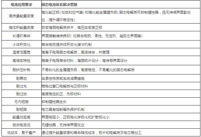1.2電池應(yīng)用要求與固態(tài)電池體系解決思路