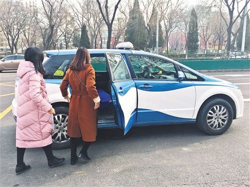 山西太原市民在街頭乘坐電動(dòng)出租車。