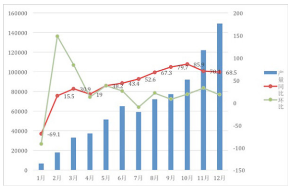 2017年我國(guó)新能源汽車歷月產(chǎn)量(單位:輛)及同比、環(huán)比增速