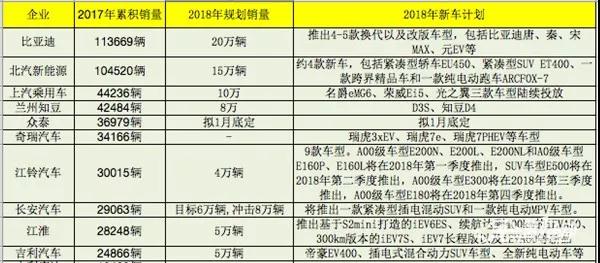 隨著時間進入2018年,國內(nèi)主流車企紛紛進入下一年計劃。據(jù)第一電動網(wǎng)了解,全國十大主流新能源乘用車車企規(guī)劃銷量超70萬臺,推出新車40余款。